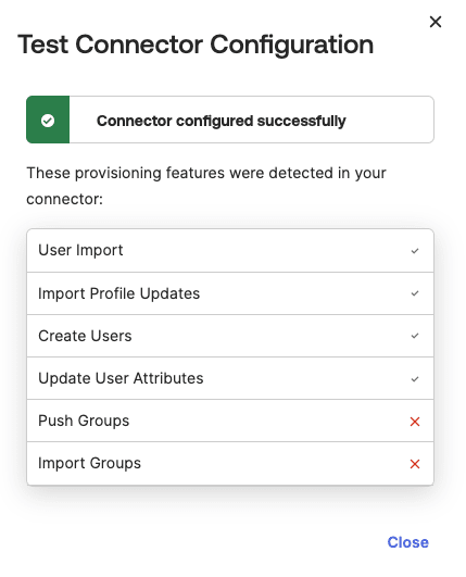 - Select Save → Test Connector Configuration. If your test isn’t successful, double check that you’ve entered your base URL and token correctly.