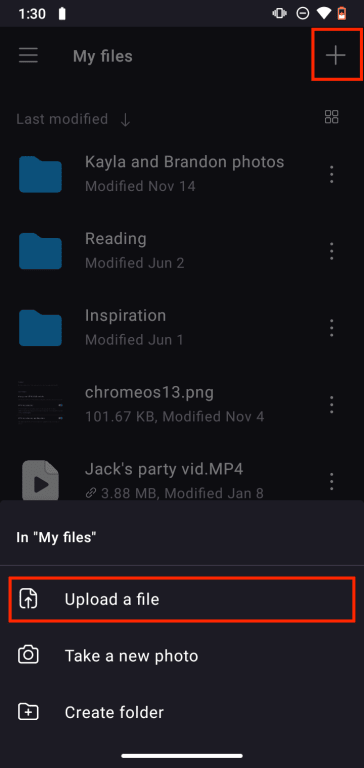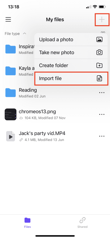 1. Tap (+) at the top right or Add files.