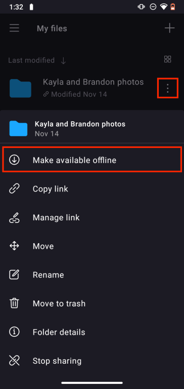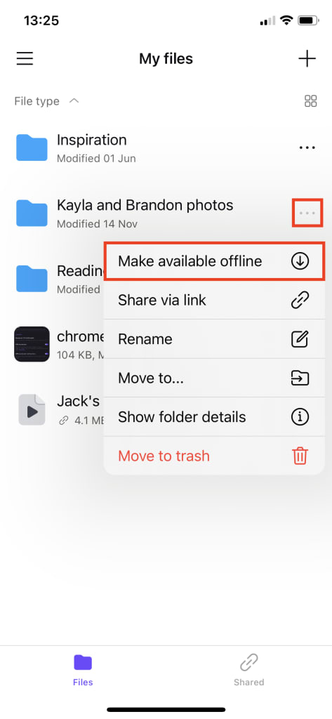 3. A small download symbol () under the file or folder name indicates it’s available offline. (Only in list view.)