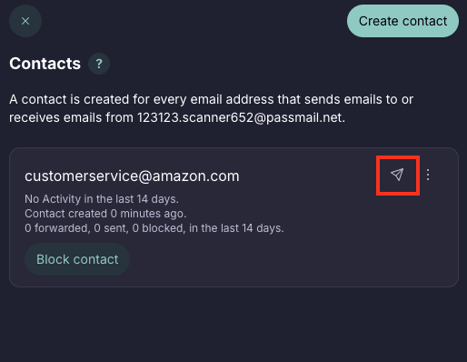 - To create a new contact, choose the alias you’d like to send an email from → Contacts