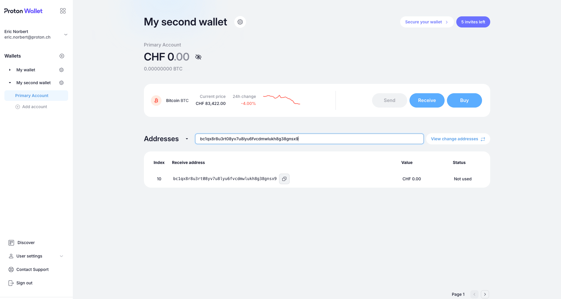 This article explains where to find and view Bitcoin addresses in Proton Wallet.