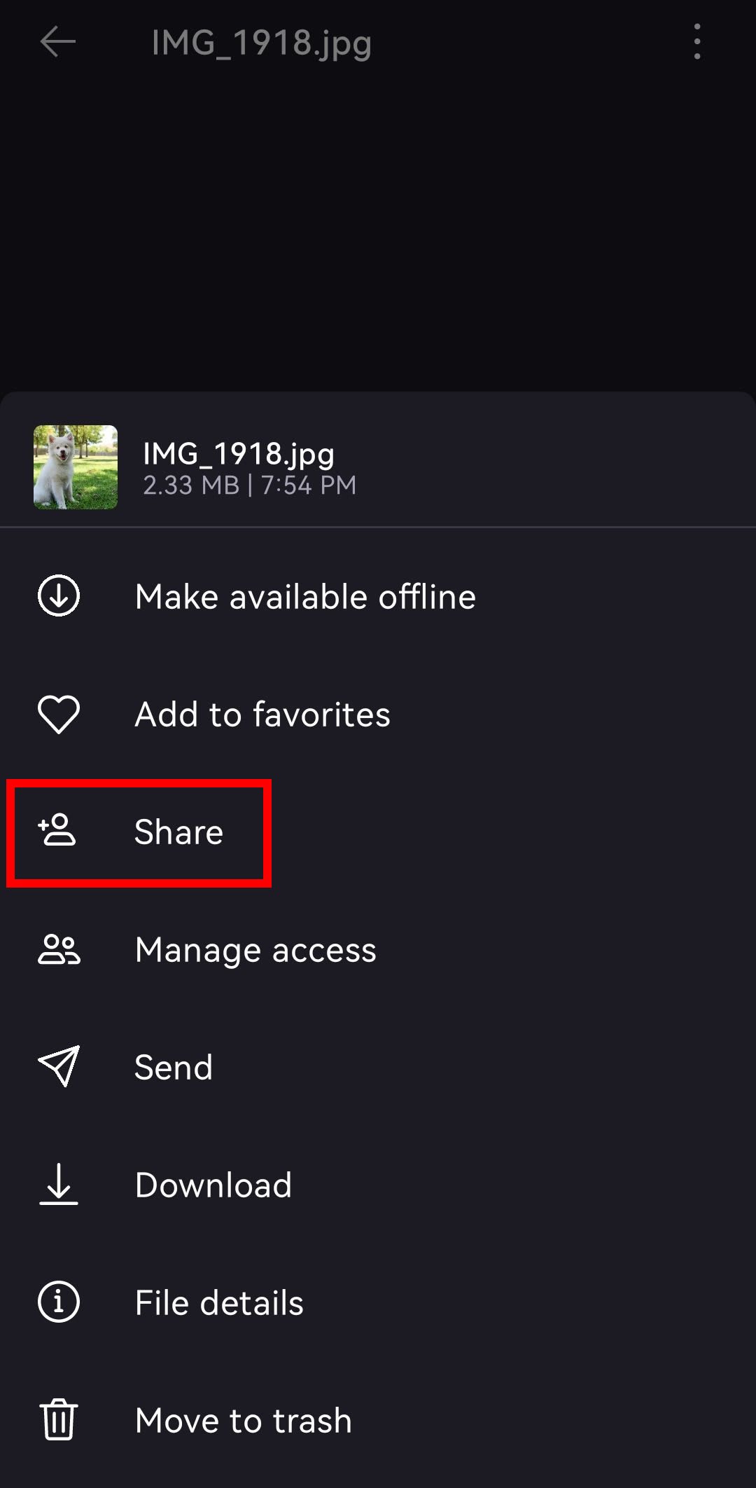 You can quickly send a picture directly from your phone backup using Proton Drive for Android or iOS: