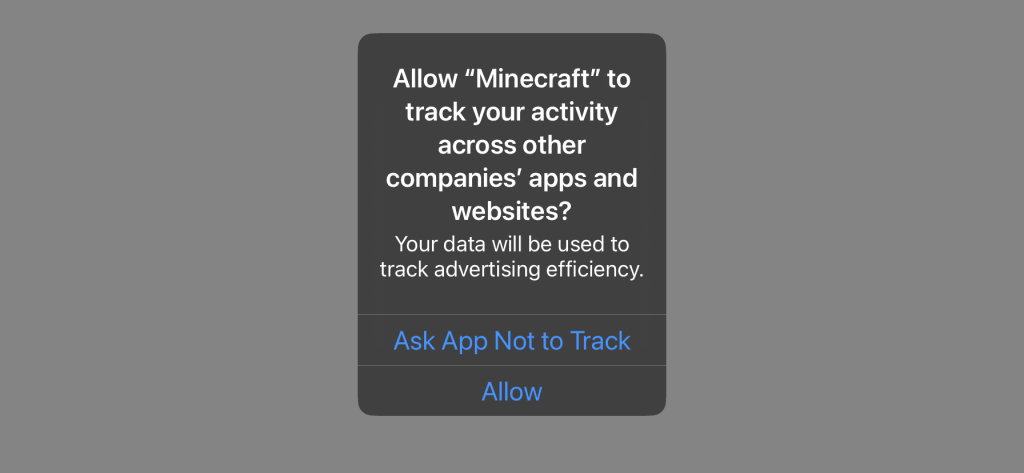You can configure your child’s privacy settings within Minecraft to limit data sharing and manage their safety and communication preferences. If you download Minecraft on a smartphone, you will be prompted to allow Minecraft to track your activity across other companies’ apps and websites. Always select Ask App Not To Track.