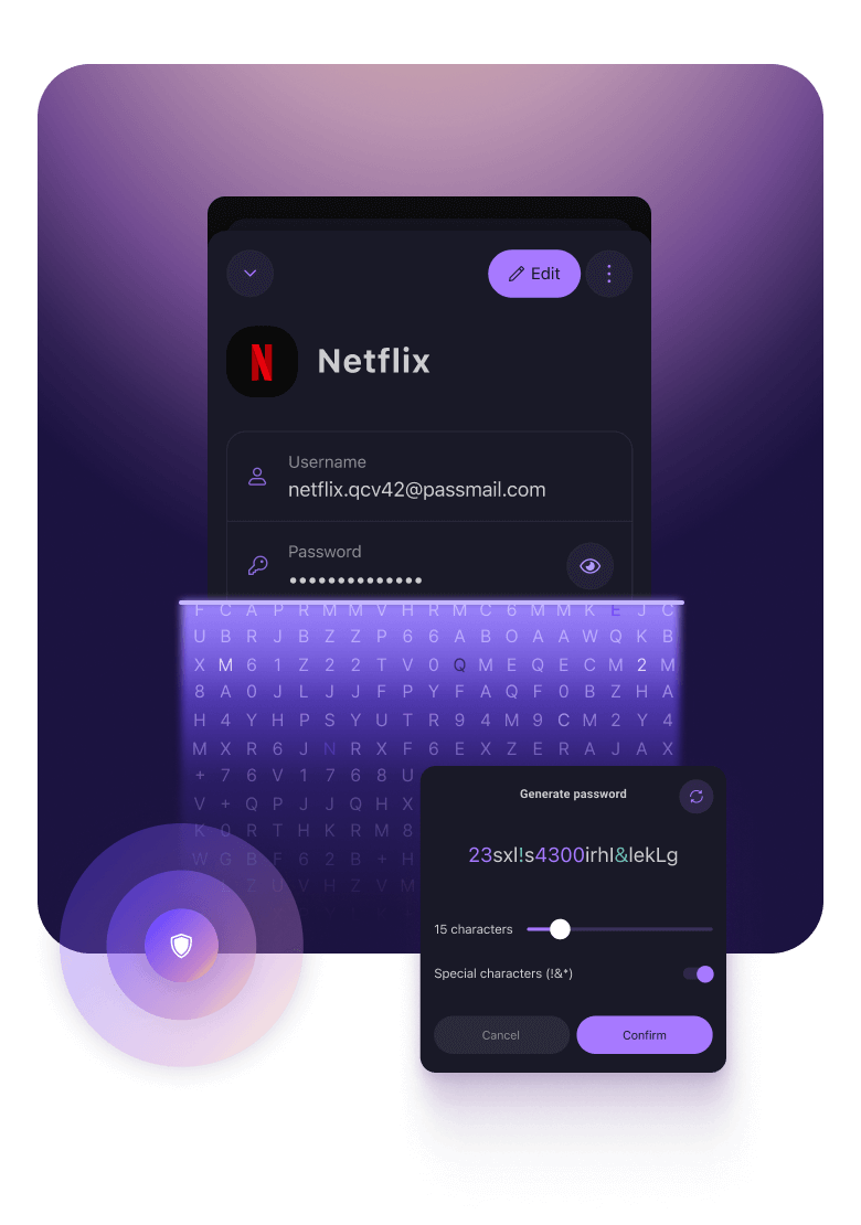 Din e-postadress är din identitet. Proton Pass hjälper dig att skydda din e-postadress genom att generera unika e-postalias för varje konto du har online.