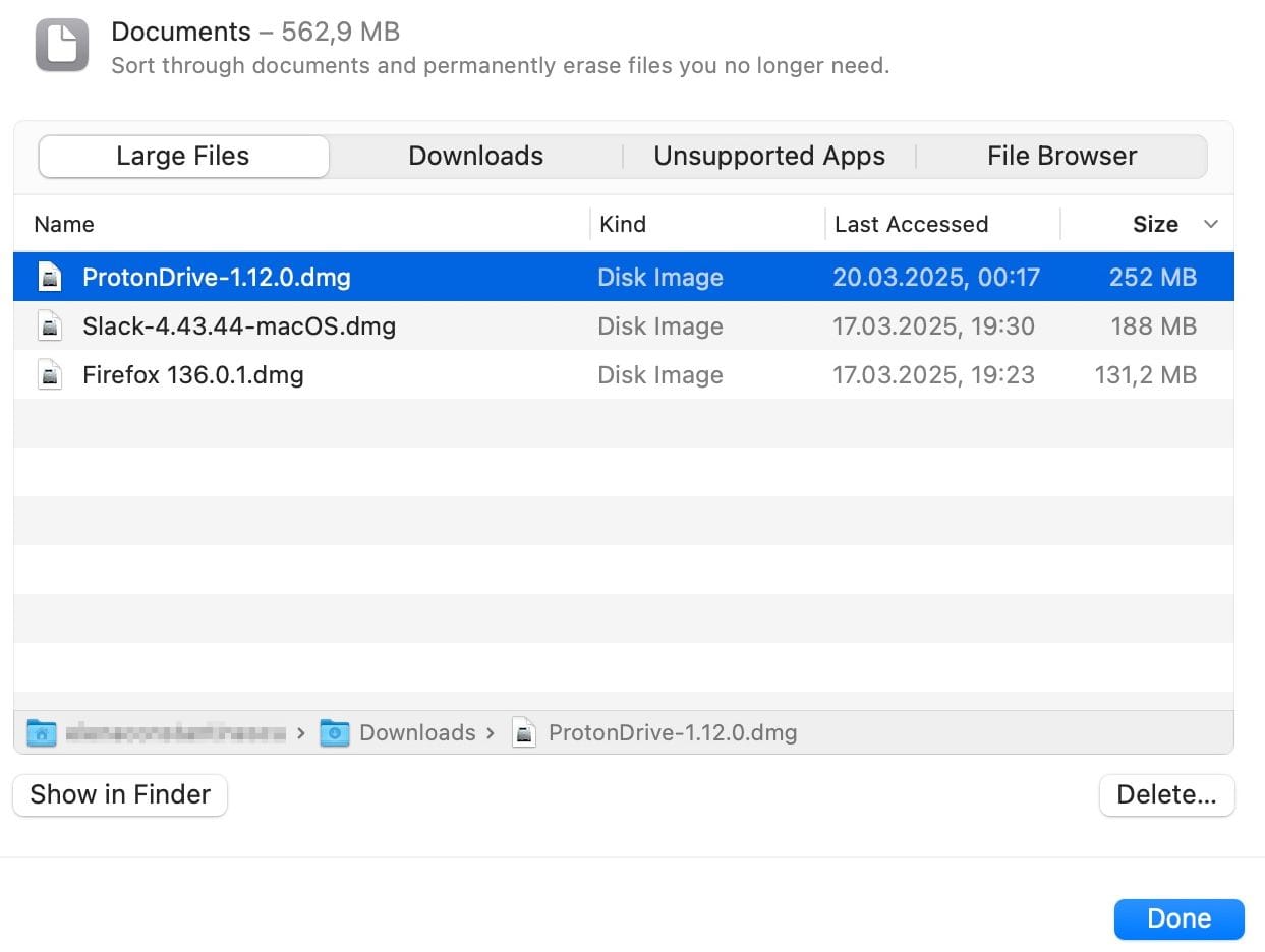 - In Documents, you can filter and remove large files, old downloads, unsupported apps, and content from folders like Downloads and Pictures.