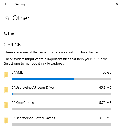 - Select Other to view large folders that Windows couldn’t categorize — these may contain important system or application files, so review them carefully and only delete items you’re certain are safe to remove.