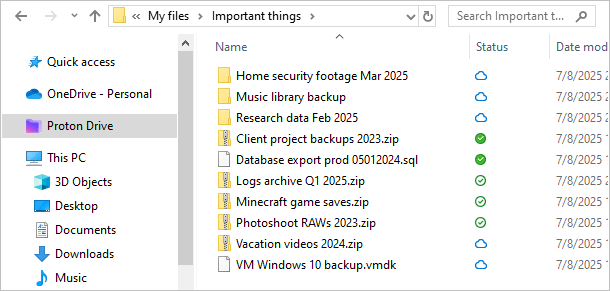 Proton Drive keeps your files securely stored, easy to access, and simple to share across all of your devices — all while keeping your local storage free. And it doesn’t involve hardware upgrades or complicated setups.