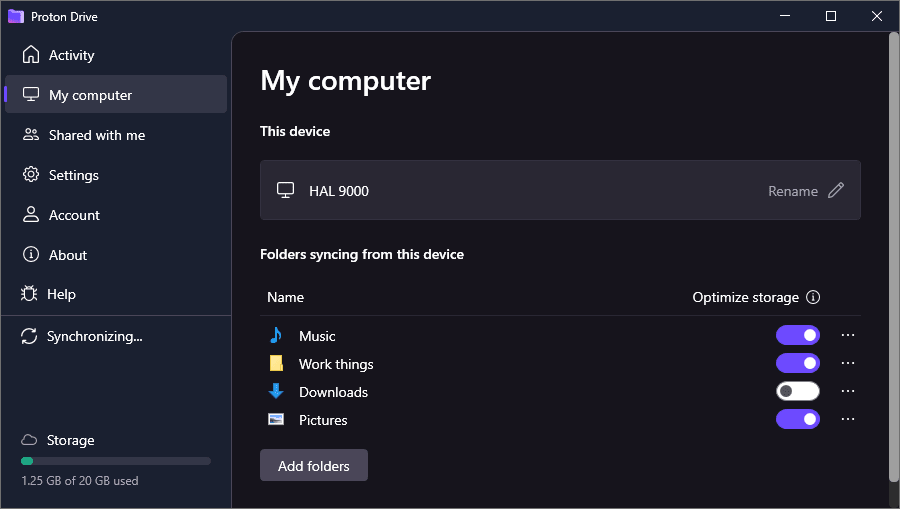 - On Windows, you can include any custom folder for syncing, not just the virtual drive. Plus, you can enable Optimize storage to automatically remove local copies from these folders when your device is low on disk space.