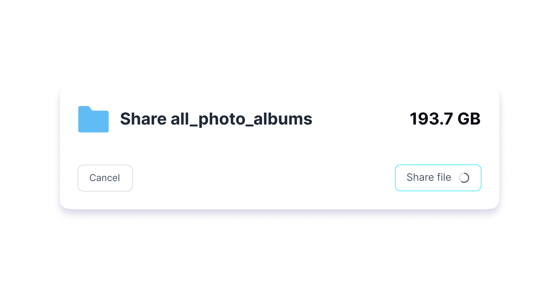 Kısıtlama olmadan herhangi bir dosyayı paylaşın — boyut sınırları konusunda endişelenmeden büyük dosyaları, klasörleri veya projelerin tamamını gönderin.