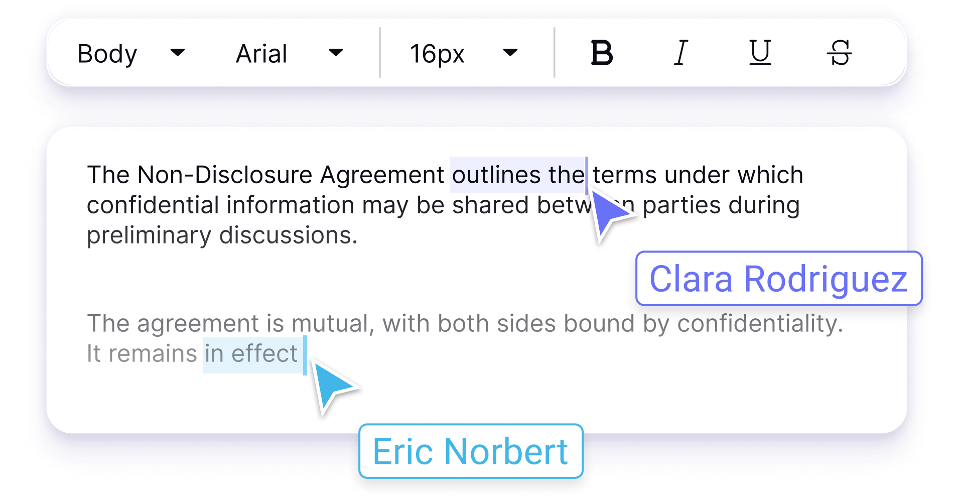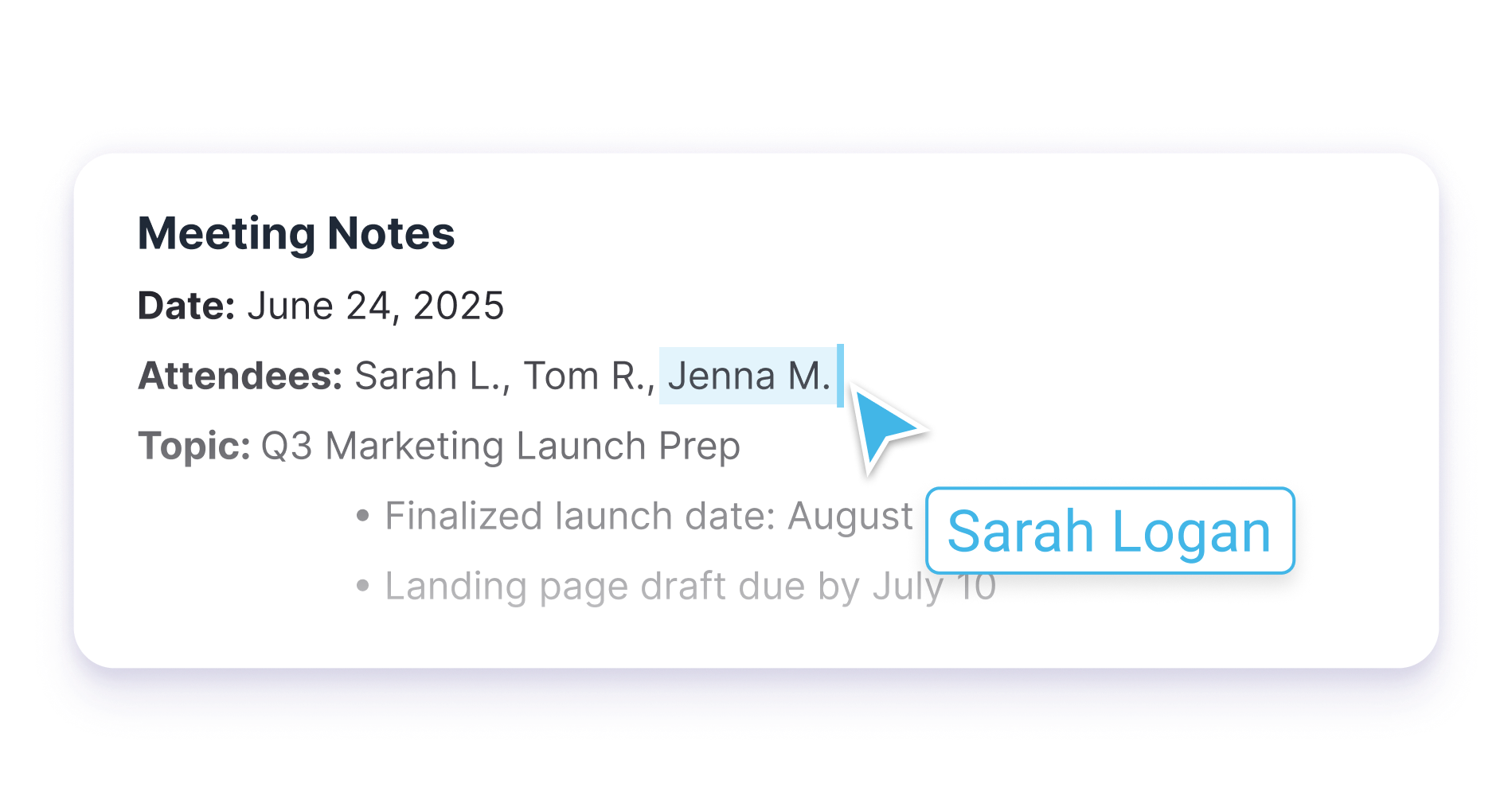 Ekibinizle birlikte çalışarak belgeleri eş zamanlı olarak düzenleyin ve güncellemeleri anında görün.