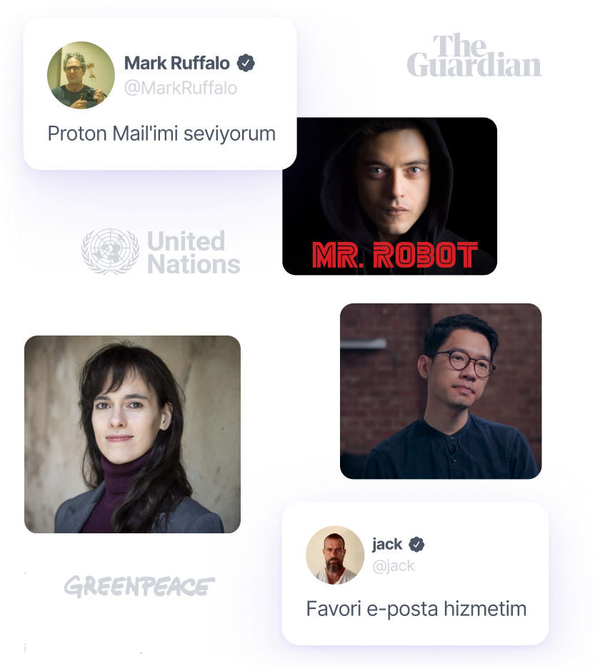 Haber merkezleri, aktivistler, uluslararası kuruluşlar, akademisyenler, Nobel Ödülü sahipleri, film karakterleri... Proton Mail güvenli ve gizli bir iletişim için onlar tarafından güvenle kullanılır. Çevrim içi gizliliğin korunmaya değer olduğuna inanan dünya çapında 100 milyondan fazla insana katılın.