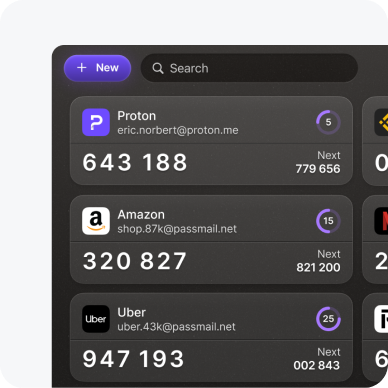 雖然 Proton Pass 提供內建的雙重驗證驗證器,但使用獨立的安全驗證應用程式可提供額外一層防禦,以抵禦複雜的攻擊。