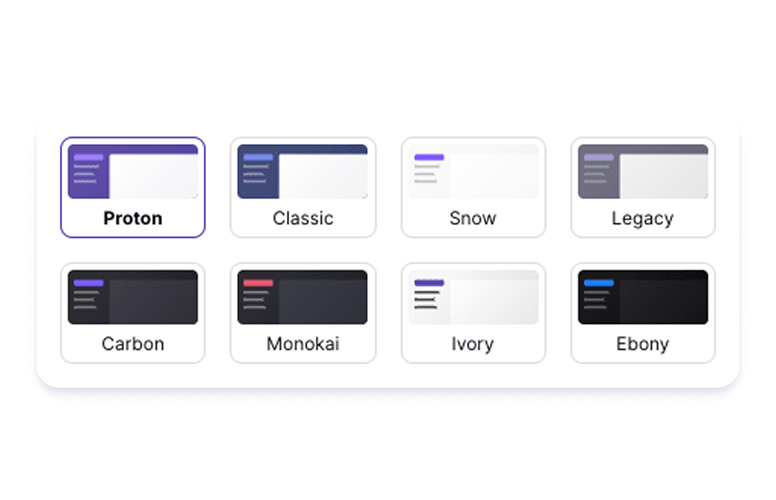 就像 Gmail 一樣,Proton Mail 讓您完全個人化您的收件匣,但沒有隱私方面的顧慮。 選擇您最喜愛的版面配置、資料夾顏色和布景主題,包括深色模式。