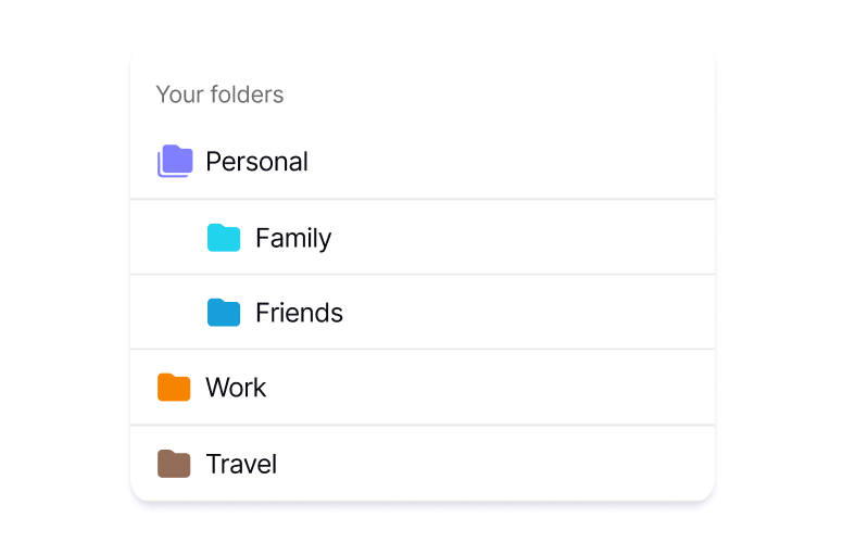 如果您正在從 Gmail 切換或嘗試 Gmail 的替代方案,Proton Mail 可以幫助您使用標籤、資料夾、子資料夾和篩選器保持井然有序,以自動管理您的收件匣。