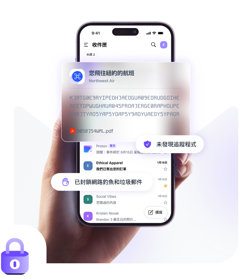 加入 Proton,透過我們的已加密電子郵件、行事曆、檔案儲存空間、VPN 和密碼管理程式,掌控您的資料。
